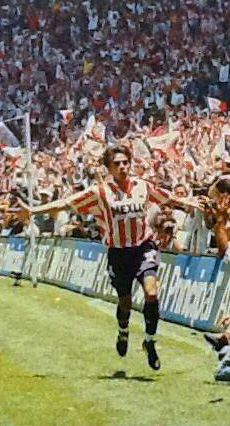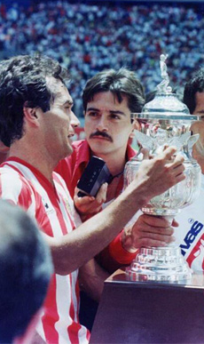 Una generación sin precedentes colmó de alegría a toda la hermandad rojiblanca al derrotar al Irapuato en la última fecha por un gol a cero, el tanto fue del gran Salvador “Chava” Reyes. En la foto de pie: Guillermo "Tigre" Sepúlveda y Crescencio "Mellone" Gutiérrez. En cuclillas: Chava Reyes.